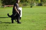 Bei bestem, sonnigen Wetter ging es nach der Mittagspause weiter mit den BGH1 & 2 Startern Stefanie Thum mit Hovawarthündin Elegra vom Hohenloher Land und Tobias Strecker mit Hovawarthündin Bärlin vom alten Pütt. Stefanie und Elegra zeigten hierbei eine hervorragende Leistung, was sich auch am Ergebnis mit 88 Punkten und Wertnote gut abliest. Unglücklicher Leistungsabbau und Fehler in der Ausführung schlichen sich bei Tobias und Bärlin ein, die noch knapp mit 71 Punkten und Wertnote befriedigend durchkamen.