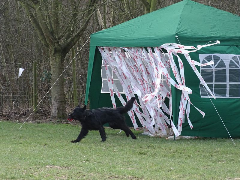 Sechs Teams konnten den Parkour mit großer Souveränität absolvieren und zeigten u.a. beim Beutetrieb mit dem Helfer (Thomas Fellenberg) ihre Sicherheit. Mit Saskia Rauner als Stewardess an diesem Tag wurden die Stationen ohne Zwischenfälle abgearbeitet.